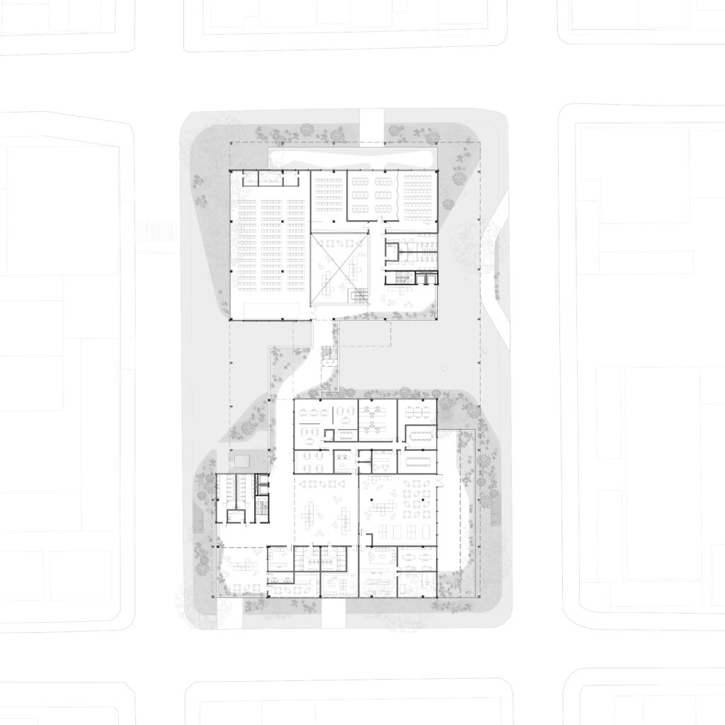 The integration of urban concept, programmatic organization, environmental strategies, structural logic, and local materiality results in an architecture that is efficient, clear, and committed to its public role. The new headquarters strengthens regional entrepreneurship, intensifies relationships, and enhances everyday urban life – a civic and enduring building.
